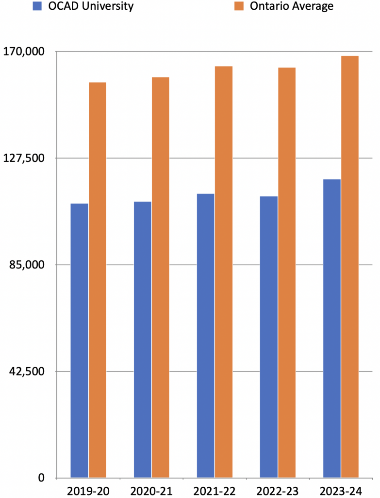 Budgets reflect priorities. Since 2020, OCAD’s Administration has consistently prioritized non-academic pending over academic spending, with non-academic spending growing at six times the pace as academic spending.