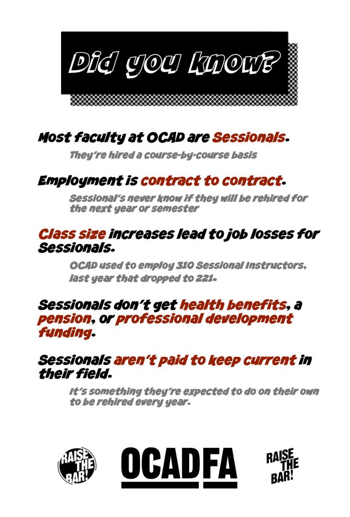 OCADFA is a member of the Canadian Association of University Teachers (CAUT) and every year we commemorate Fair Employment Week to raise awareness about precarious employment on campus and to improve the working conditions of contract academic staff.