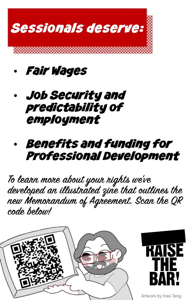 Join us for photos with a sign calling for “FAIR EMPLOYMENT FOR SESSIONALS!” that we will share on social media to get the word out that much work is still to be done.