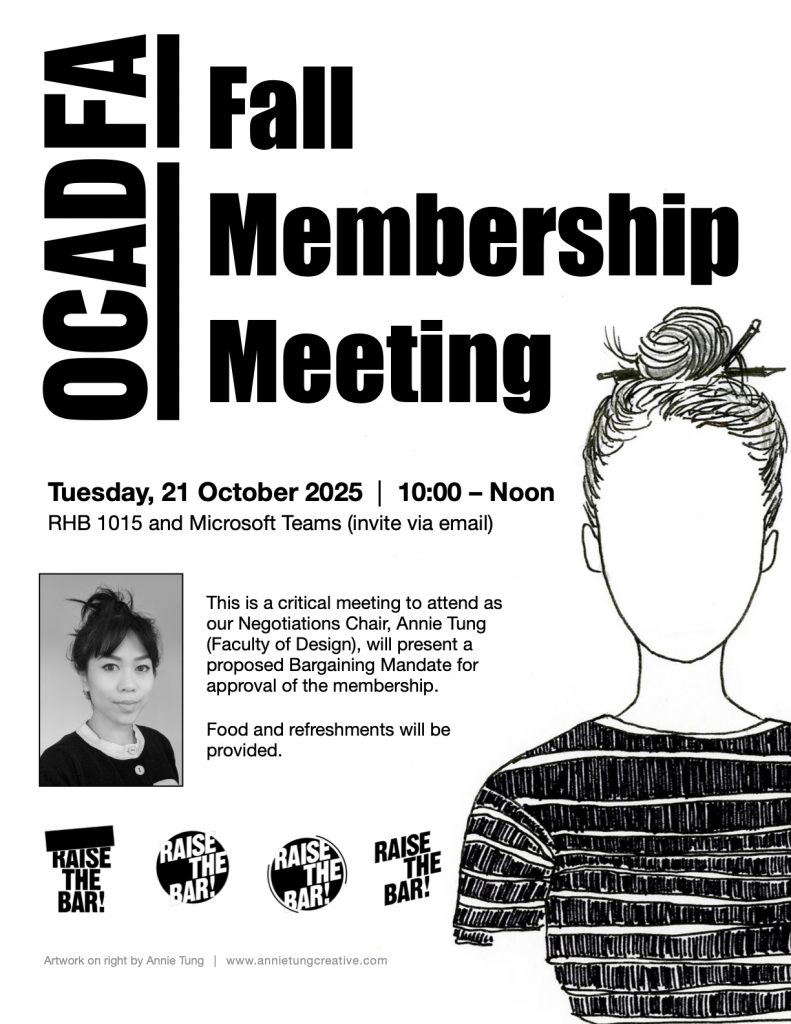 [For our members] Join us for the OCADFA Fall Membership Meeting on Tuesday, 21 October from 10am to noon.