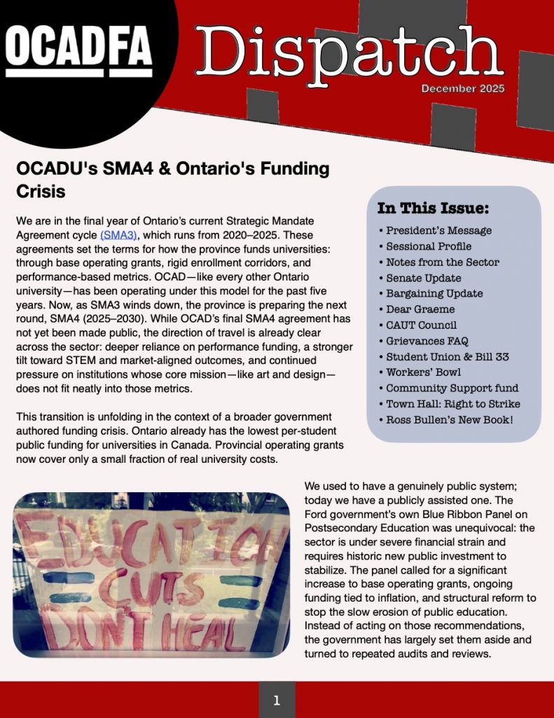For previous issues of our newsletter: https://ocadfa.ca/ocadfa-dispatch/