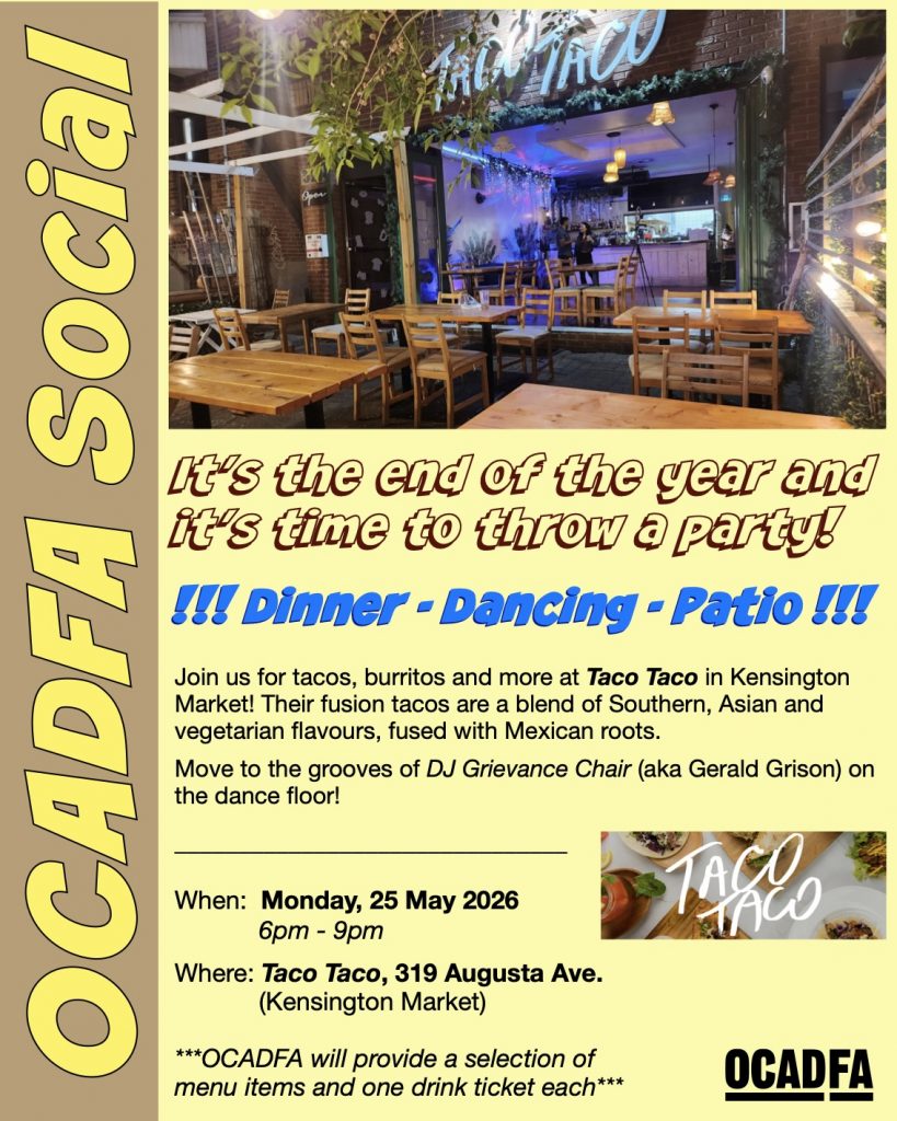 ***OCADFA will provide a selection of menu items and one drink ticket each***