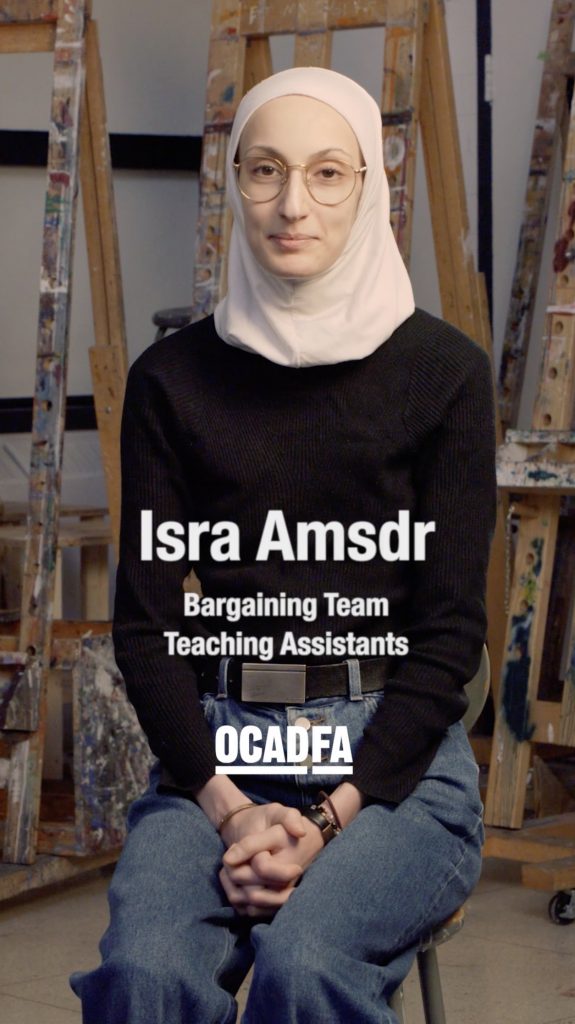 We are very proud of the work of everyone in front and behind the cameras on this project and excited to share this with the OCADFA membership, the university at large, and our friends and supporters in labour and the community.